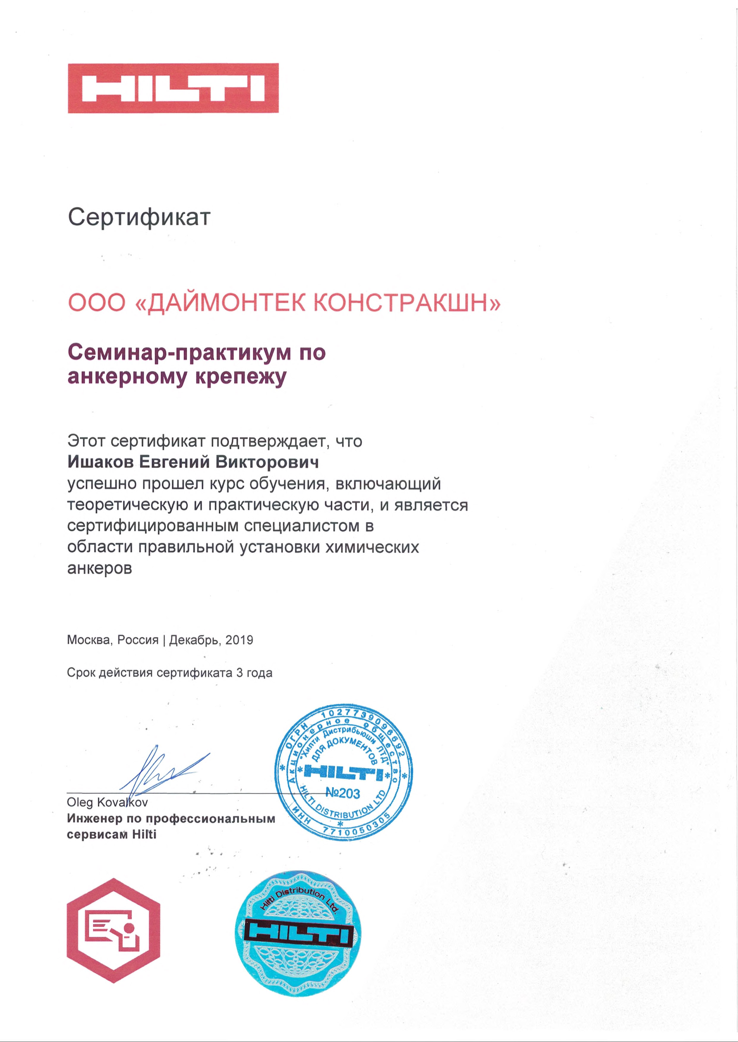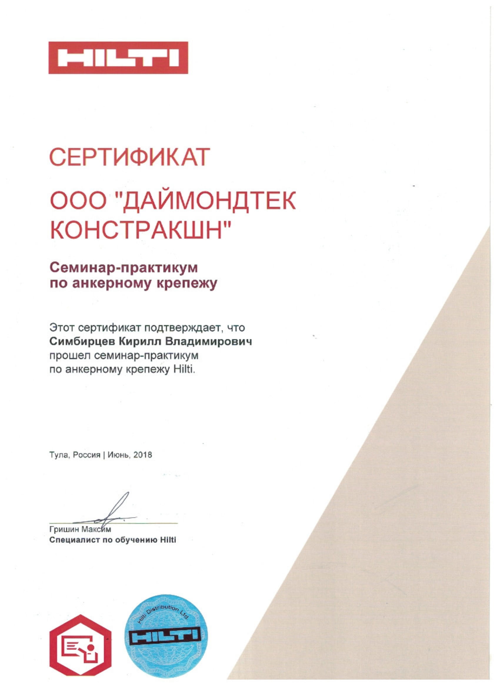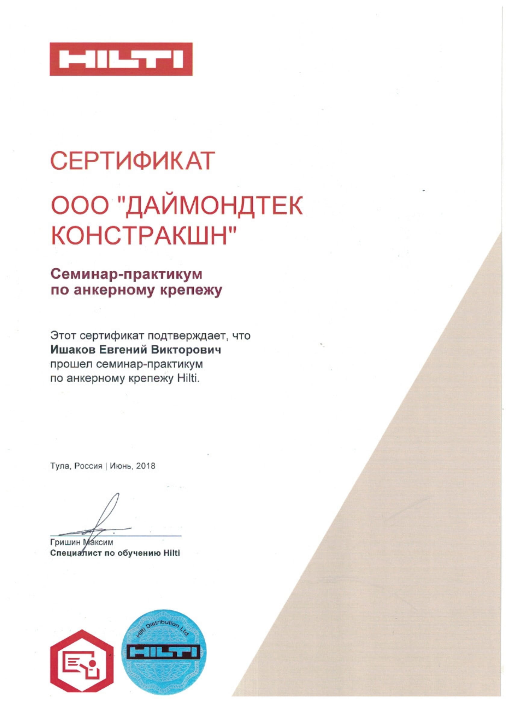 Сертификаты Hilti