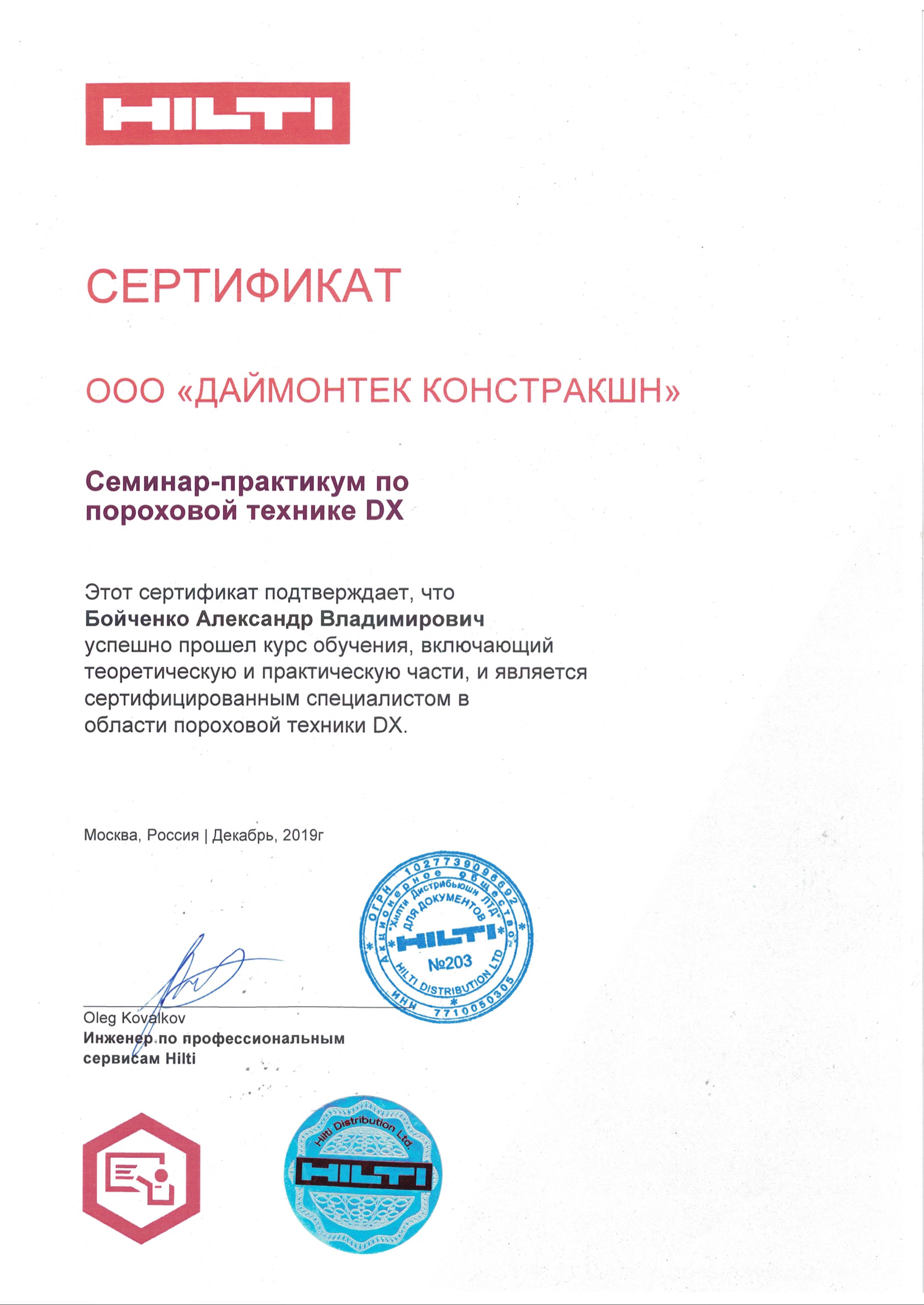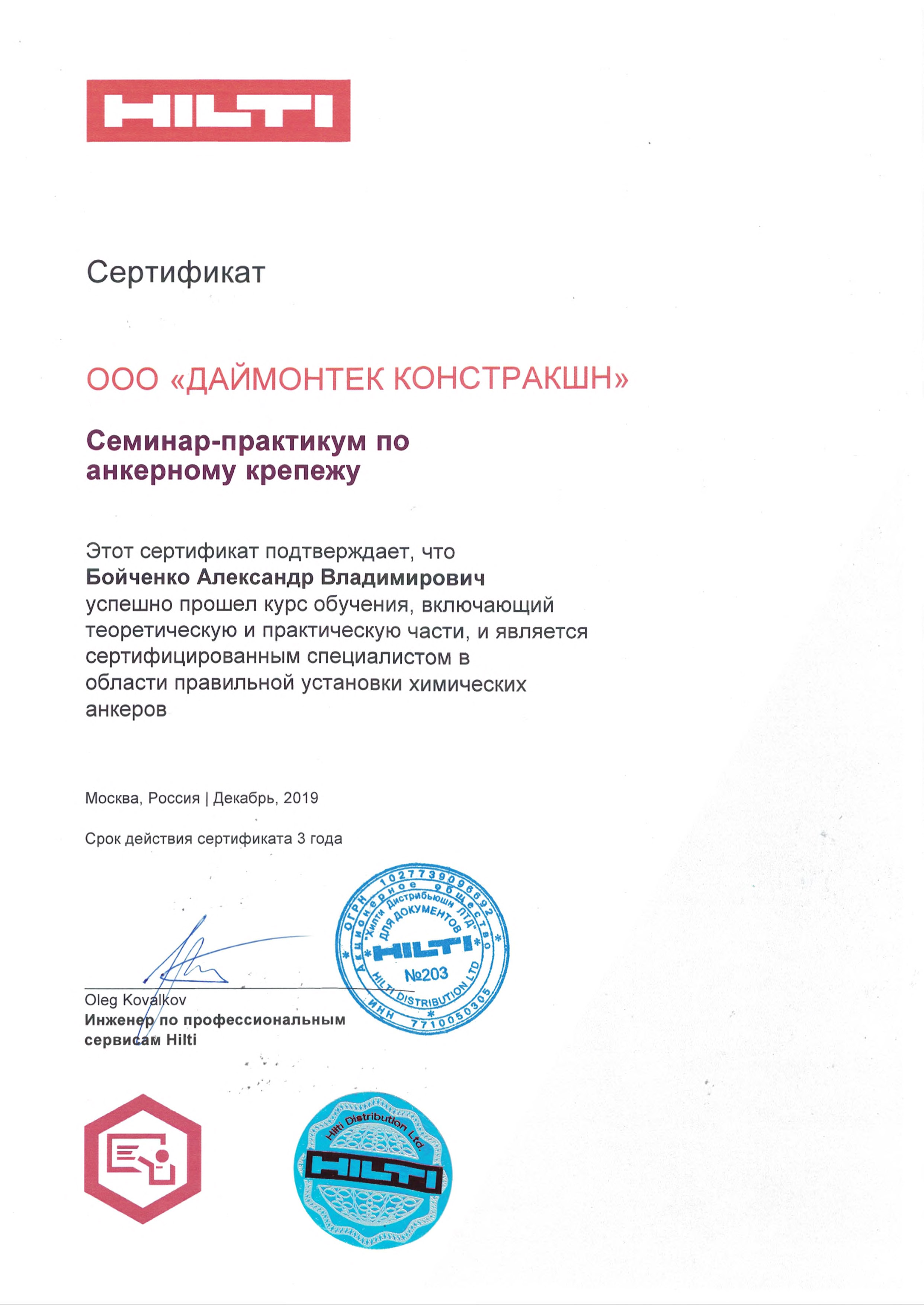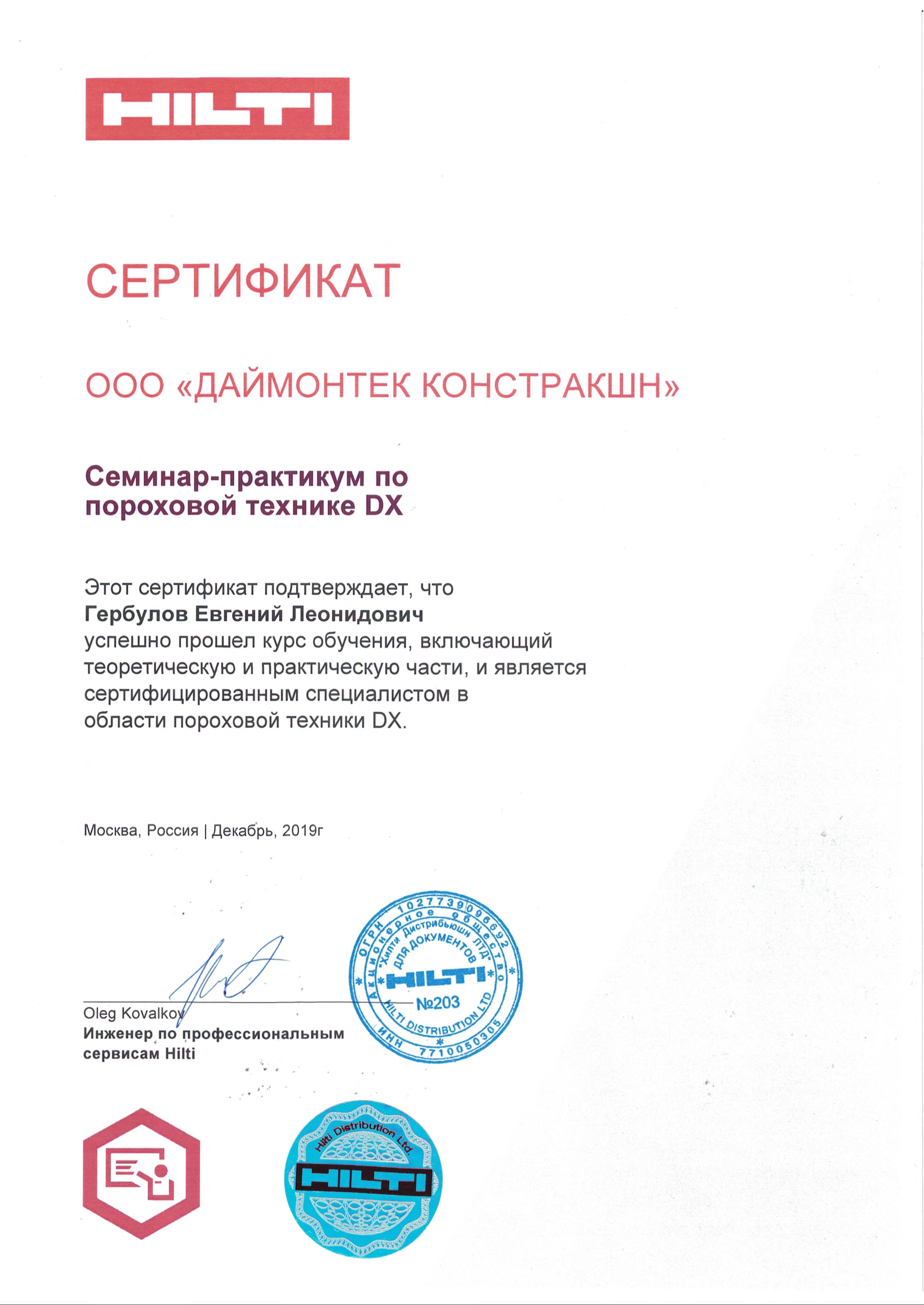 Сертификаты Hilti